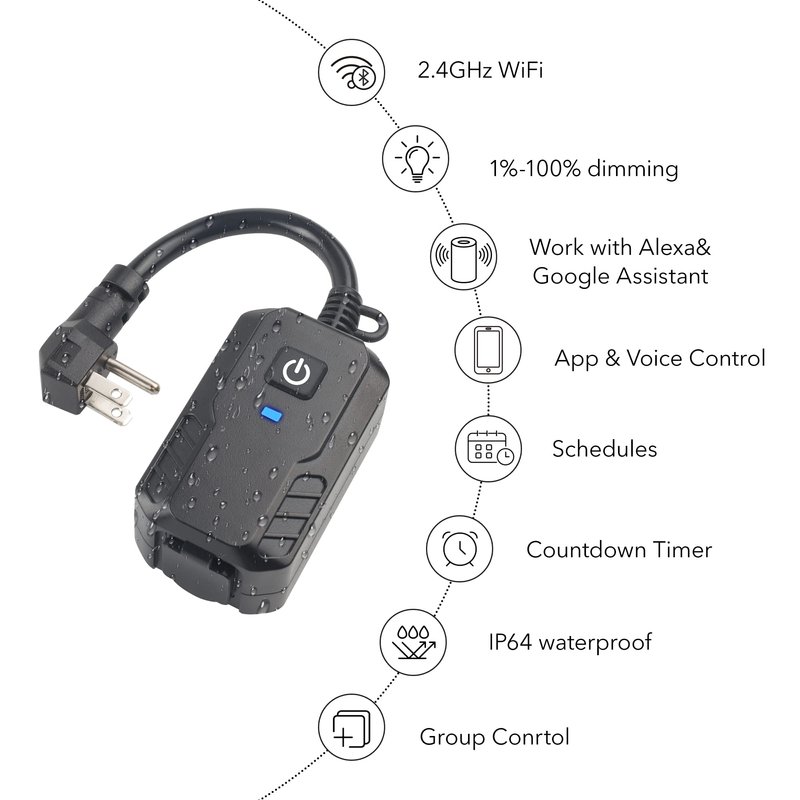 - Service Support: THE LIGHTS DEVICE MUST BE DIMMABLE. We provide 15-month warranty service. Your questions will be answered as soon as possible. With our strong guarantee and friendly customer service, you can purchase this outdoor smart plug without worry.