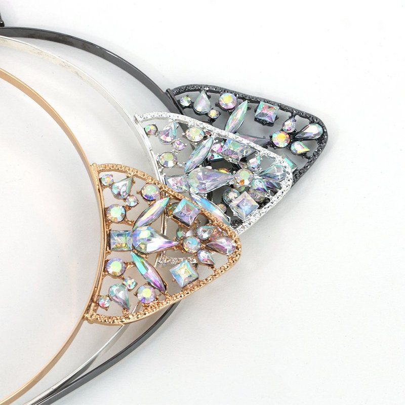 - 【SEXY RHINESTONE CAT EARS HEADBAND】 Come with 3 pcs lovely pretty crystal cat ears headband with different colors, golden, silver and black. They are in the shape of cat ears, cute and pretty, sexy and nifty, naughty yet innocent, multiple temptation together wearing this hair hoops. Made of high quality smooth durable shiny metal, and the ear part is stick with rhinestone, comfortable to wear with soft touch. You can wear it just for entertainment, or help you while washing face and makeup