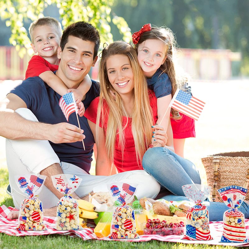 - 【Package Included】80pcs 4th of July treat bags in 4 different designs: 20 pieces per style with 80 golden twist ties. Which are enough to meet your daily holiday needs.