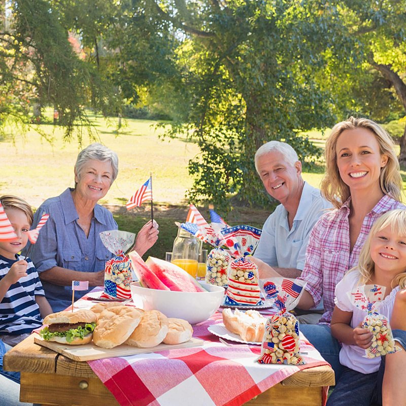 - 【Suitable Size】Patriotic cellophane bags are 28x13cm / 11x5inch The perfect size to hold many small items as you like, like cookies, snacks, toys, candy, greeting cards, gifts and more. Share their fun with friends and kids during Independence Day Party Favors.