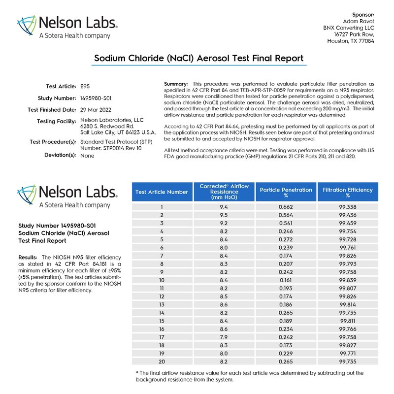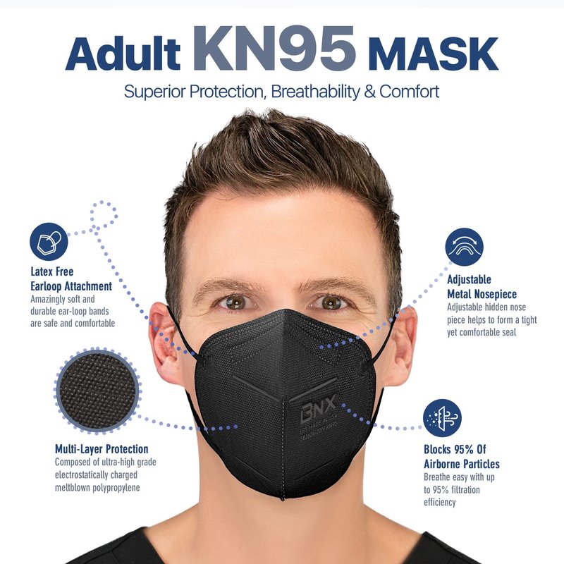 [Made in USA, Registered Manufacturer] BNX KN95 face masks are manufactured in the United States by BNX Converting, LLC. Designed and manufactured under strict quality standards in Houston, TX, at BNX’s Registered facility (Registration # 3017489417) (Quality Control United States Military Defense Standard MIL-STD-105E)
