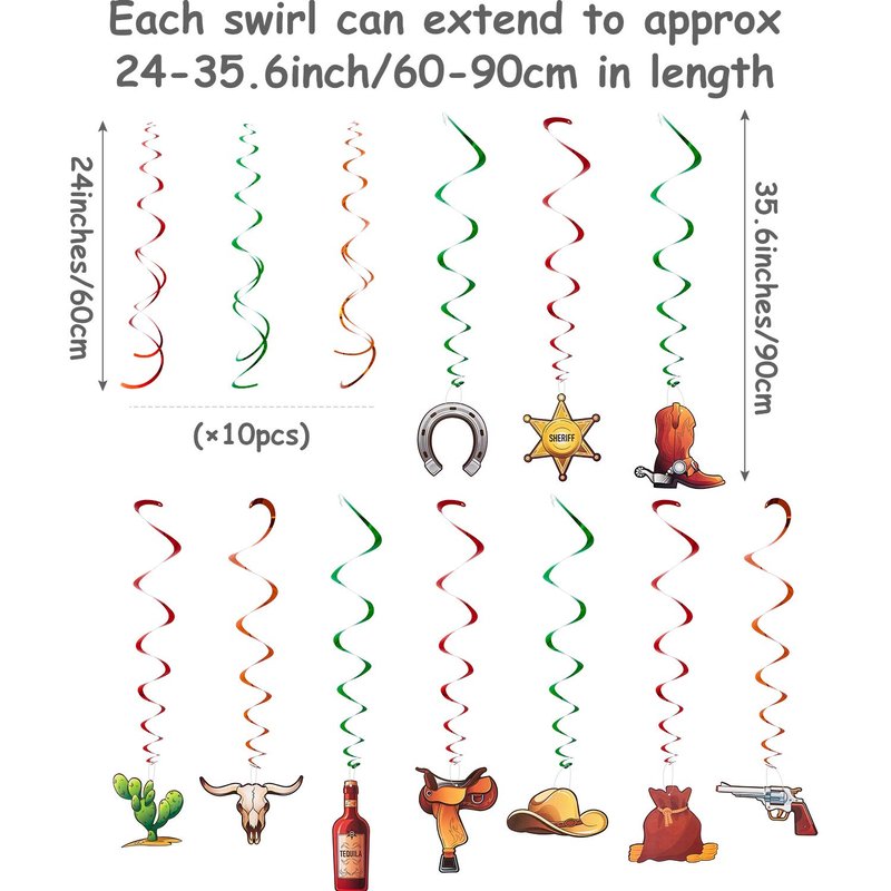 - Hanging swirl: hanging swirl decorations include single swirl and double swirls, designed with cowboy hat, star, yak skull, boots and cactus and so on, easy to attract other's attention, various cute shapes will make your party more memorial