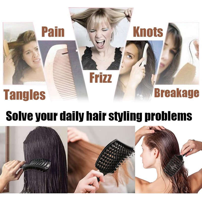 The large curved shaped hair brush can hold more hair altogether. detangle your knotted hair and make hair smooth in less time, you’ll love the hair detangling brush for it can save time for your busy life