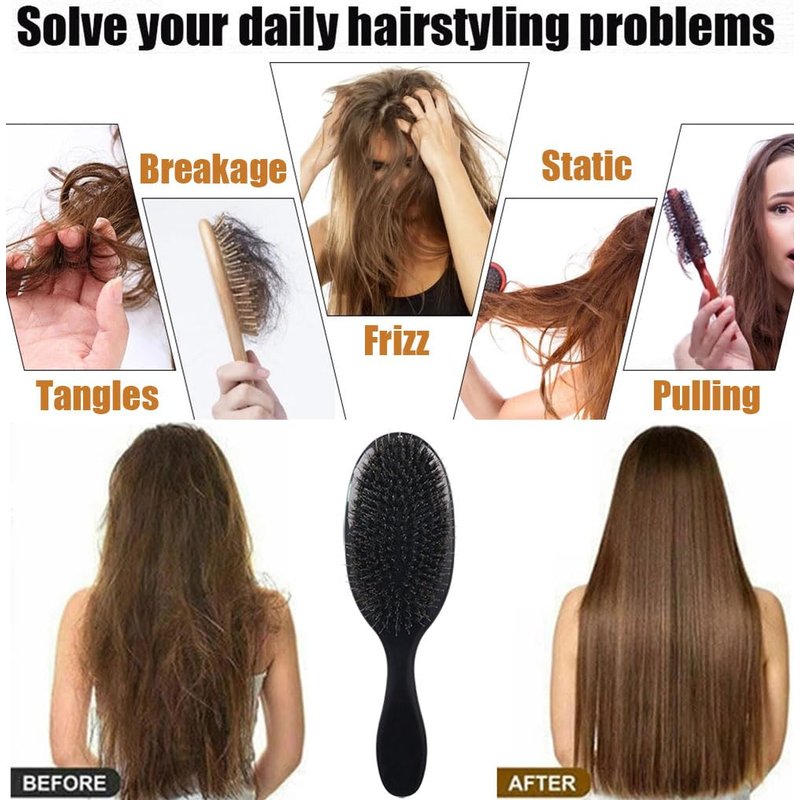 This anti-breakage paddle brush combines the benefits of boar bristle brush and detangling brush, it is designed for those who want to have healthy hair and create a stylish look