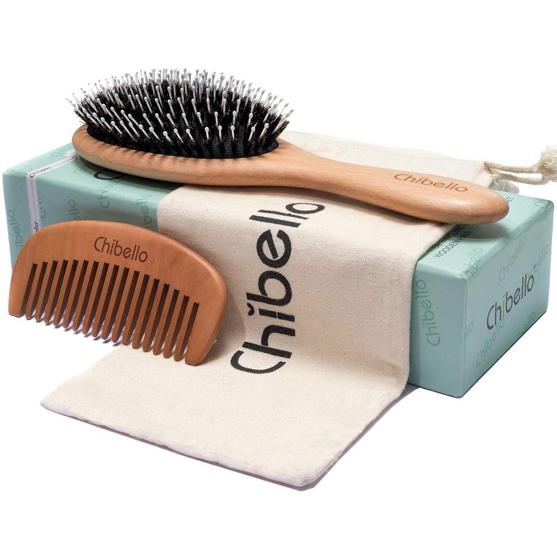 Achieve best results with our Chibello Boar Bristle Hair Brush and Comb Set.