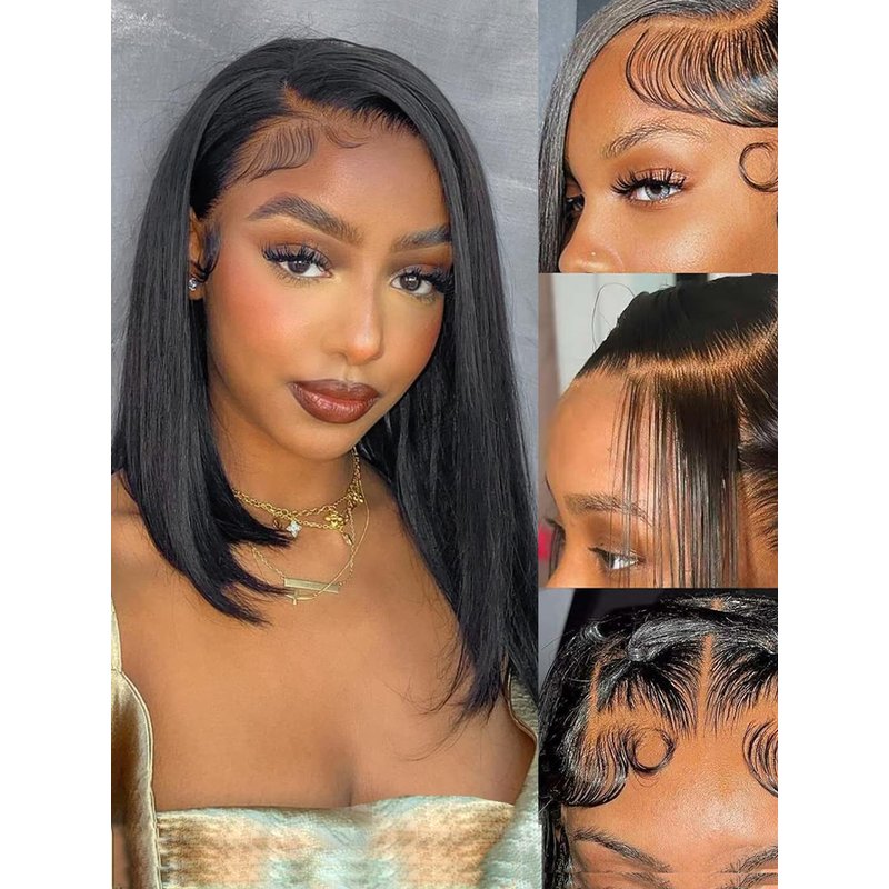 - Bob Wig Human Hair 13x4 HD Frontal Lace Wig 10 inch Short Straight Bob Wigs for Women Glueless Bob Lace Front Wigs Human Hair Pre Plucked 150% Density Natural Black Color (13x4 bob wig, 10 inch)