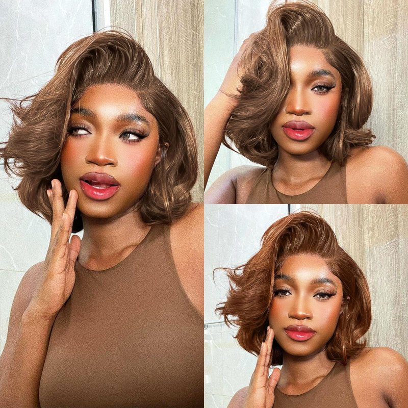 Bob Wig Human Hair Chocolate Brown Lace Front Wig Human Hair for Women 13x4 HD Body Wave Lace Front Wigs Human Hair Color 4 Glueless Wigs Human Hair Pre Plucked with Baby Hair 180% Density 8 Inch