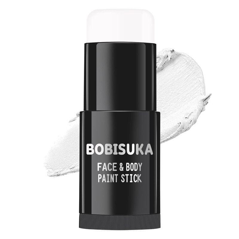 BOBISUKA Face Body White Paint Stick, Clown Makeup Eye Black Sticks for Sports, White Foundation Face Painting Kit for Halloween Skeleton Vampire Mime Skull Joker Special Effects Cosplay SFX Costume
