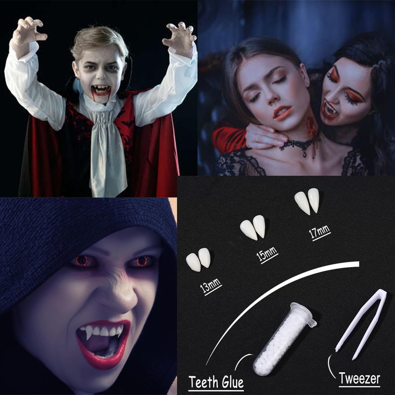 - Realistic and Comfortable Vampire Teeth: Crafted from high-quality, safe materials, these vampire teeth fit comfortably over your natural teeth. The sharp, pointed fangs are designed to look authentic. The thermal adhesive glue ensures a secure bond without damaging your teeth.