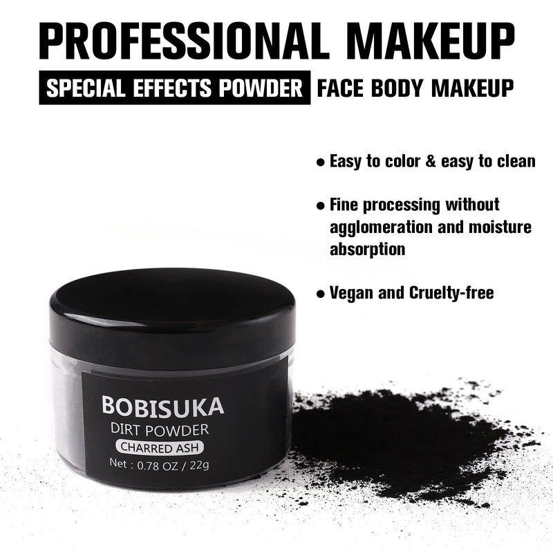 【SFX Makeup Powder】BOBISUKA Special Effects Powder is a type of cosmetics used to create various special effects makeup, can create dramatic makeup designs and effects 【Cosmetic Dirt Effects】Charred Ash makeup special effects powder can be used to simulate special effects such as wounds and congestion, suitable for Halloween makeup and film and television special effects 【Vegan & Cruelty-free & Non-toxic】Packed with high-quality ingredients, Powder is vegan, cruelty free and gluten free for peace of mind. After use, the skin should be cleaned promptly to avoid damage to the skin. 【Easy to Use & Remove】When using makeup special effects powder, you should first choose the color that suits you, and then apply the powder to the surface of the skin as needed. After use, the skin should be cleaned promptly to avoid damage to the skin. Works with All Skin tones 【Ideal for Many Occations】It is a great invention suitable for movie special effects, horror movies, Halloween makeup, simulating various wars, fights, tragedies, movies, TV dramas, stage performances, cosplay Halloween makeup, parties, themed weddings, and other occasions