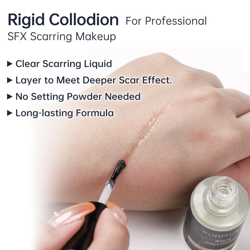 - 【PRO RIGID COLLODION KIT】This large capacity combo kit(15 ml/0.51fl.oz rigid collodion with 50ml/ 1.69fl.oz Remover)can take your costume makeup to next level! Easy to create simulated scars and customization looks for your needs. And it can give you long lasting SFX looks and realistic scar creation into your cosplay, special effects makeup on Halloween or any festivities.