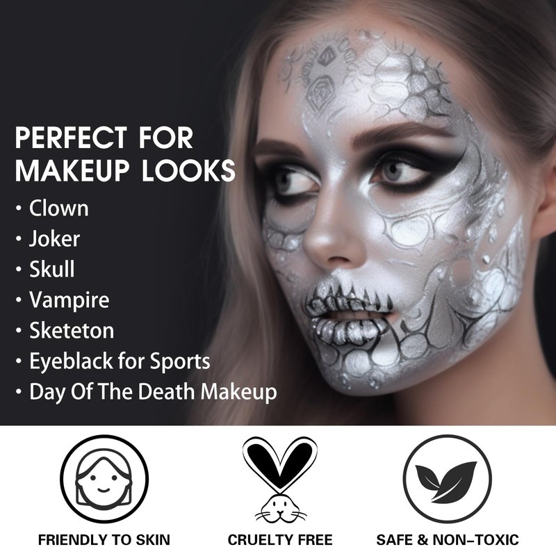 - WONDERFUL COLORS: With a wide range of 14 colors help you create any design you want,such as Skeleton, Clown, Devil, Vampire, Spider man, Mime, Avatar, Camouflage, Monster, Witch, Sally face, Joker, Zombie, goth make up, grayscale makeup, SFX special effects makeup looks.