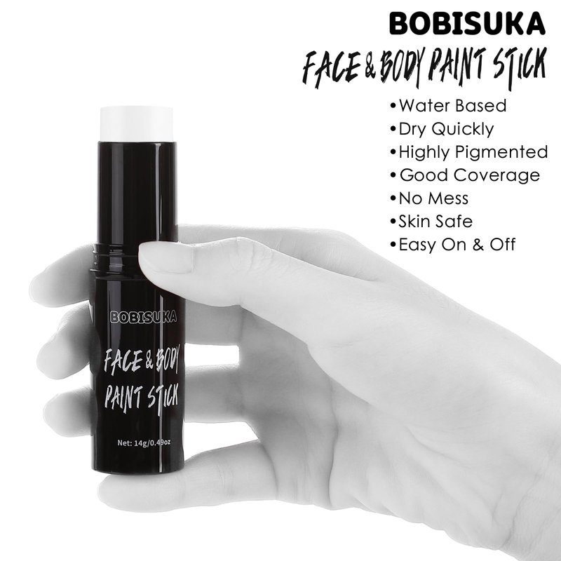 - 【Water Based Face Body Paint】 Premium water-based white face body paint stick made from cosmetic-grade ingredients. Experience a creamy, highly pigmented formula that ensures full coverage with a velvety finish, lasting all day.