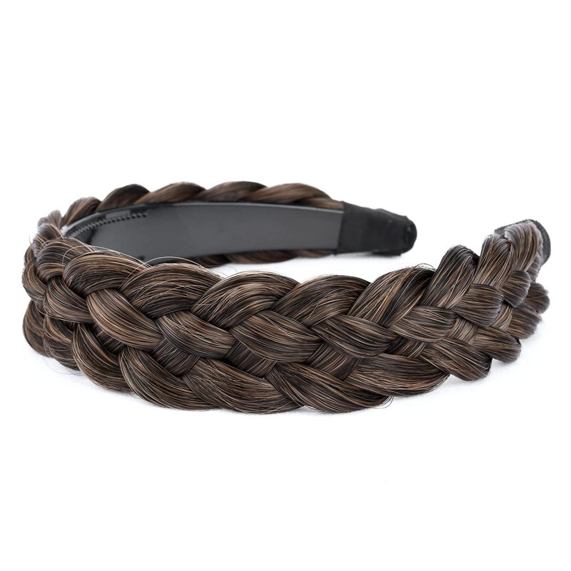 BOBIYA Wide Chunky Plaited Braided Headband Hair Band Synthetic Braid Hairpieces with Teeth Piano Two Tone Colors Accessories (5-Carbon Brown)