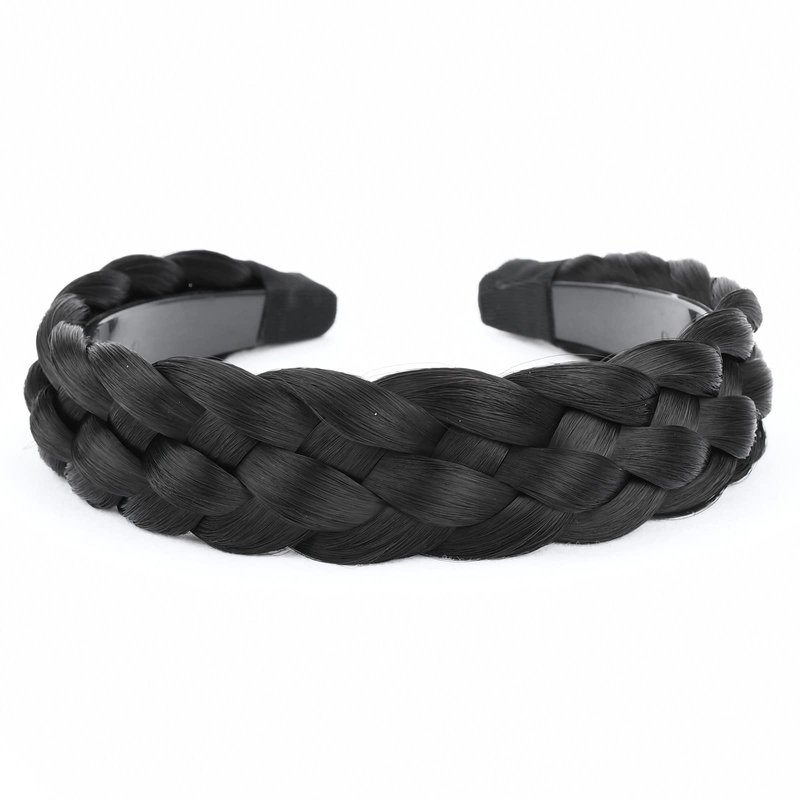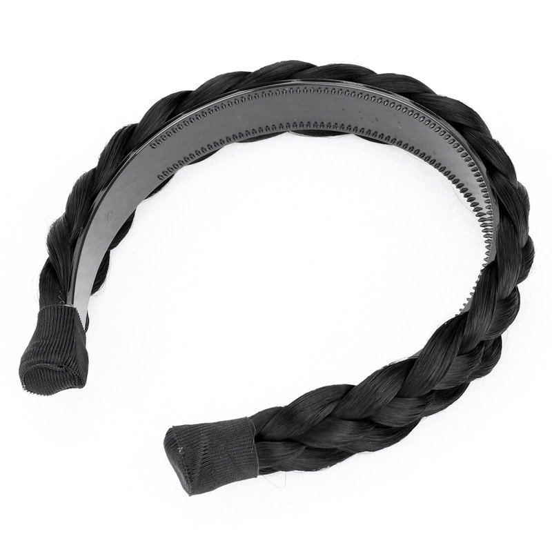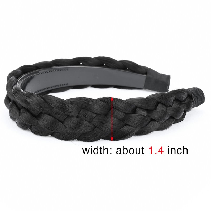 BOBIYA Wide Chunky Plaited Braided Headband Hair Band Synthetic Braid Hairpieces with Teeth Piano Two Tone Colors Accessories for Women Girl Wide 1.2 Inch (5-Natural Black)