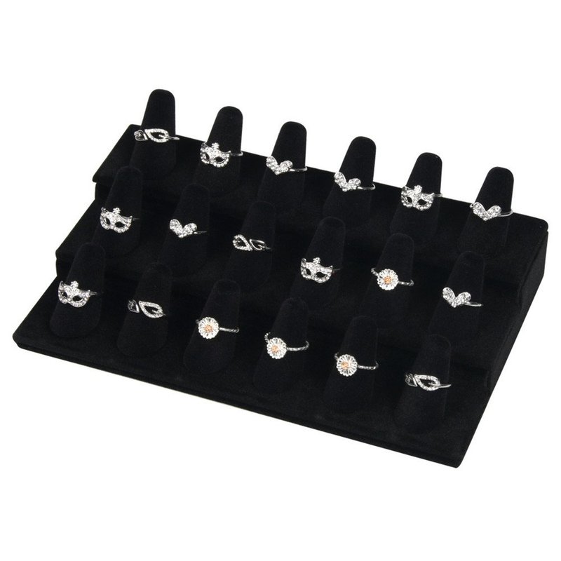 Bocar Black Velvet Finger Ring Display Showcase Organizer Holder Jewelry Storage Counter (18JZZ)