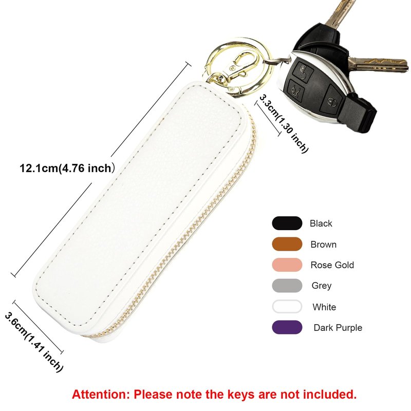 Material: PU Leather. Color: Black, Brown, Rose Gold, White,Grey, Dark Purple. 【Characteristic Lipstick Holder】With this lipstick case holder, you can hang your lipstick on places like a bag and then you can get the inside lipstick or lip gloss anytime and anywhere to refine your make-up. 【Convenient and Safe】With this chapstick holder on your bag, you don't have to rush to rummage your chapstick all over the bag and don't need to worry that the chapstick will stain your bag since the zipper ensures the complete closure of the case with the chapstick inside. And the elastic band inside protects the chapstick from dropping. 【Practical Keychain Ring】Equipped with the key chain ring and clasp, you can hang the case with your lip balm on almost everywhere like bags, key chains, jeans, our crossbody wallet case, and so on, which are friendly for walking, hiking, and riding. 【Smooth Leather】After comparison on quality, character, grain, and texture, we chose this leather which is smooth in texture while comfortable in grip to produce this lip gloss storage bag. Besides, this lipstick pouch is designed with a leather hole on the side which is convenient to put on the bag through the strap. 【Compatibility】This leather lipstick pouch is 12.1cm*3.6cm*3.3cm (4.76 inch*1.41 inch*1.30 inch), which is compatible with most chapstick or lipstick. Good choice as a gift for women and girls.