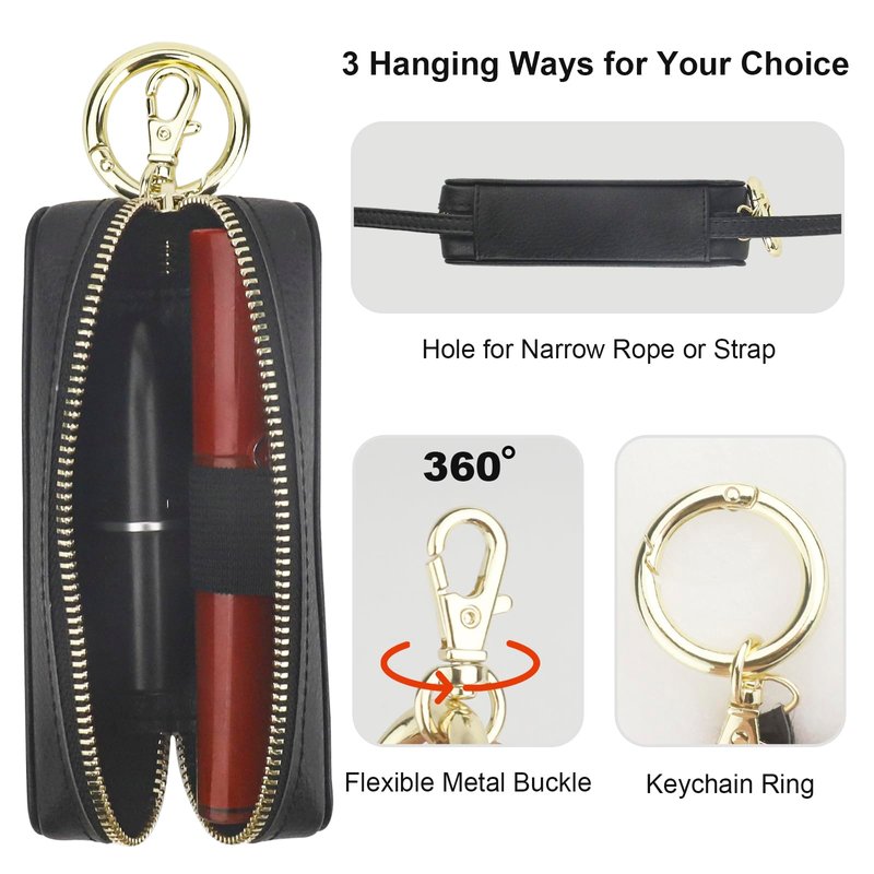 - 【Smooth Leather】After comparison on quality, character, grain, and texture, we chose this leather which is smooth in texture while comfortable in grip to produce this lip gloss storage bag. Besides, this lipstick pouch is designed with a leather hole on the side which is convenient to put on the bag through the strap.