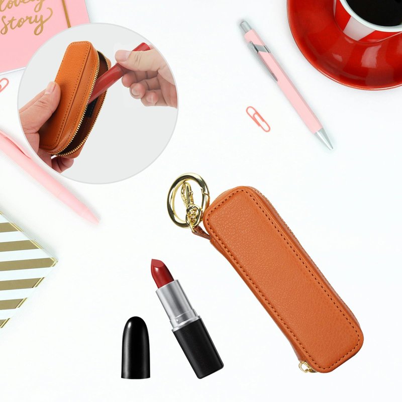 - 【Smooth Leather】After comparison on quality, character, grain, and texture, we chose this leather which is smooth in texture while comfortable in grip to produce this lip gloss storage bag. Besides, this lipstick pouch is designed with a leather hole on the side which is convenient to put on the bag through the strap.