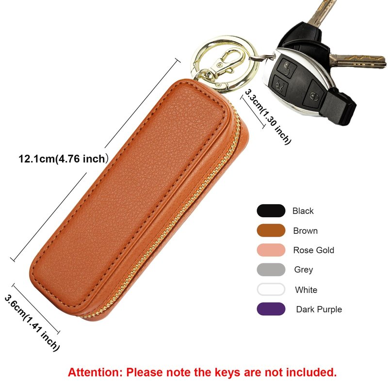 Material: PU Leather. Color: Black, Brown, Rose Gold, White,Grey, Dark Purple. 【Characteristic Lipstick Holder】With this lipstick case holder, you can hang your lipstick on places like a bag and then you can get the inside lipstick or lip gloss anytime and anywhere to refine your make-up. 【Convenient and Safe】With this chapstick holder on your bag, you don't have to rush to rummage your chapstick all over the bag and don't need to worry that the chapstick will stain your bag since the zipper ensures the complete closure of the case with the chapstick inside. And the elastic band inside protects the chapstick from dropping. 【Practical Keychain Ring】Equipped with the key chain ring and clasp, you can hang the case with your lip balm on almost everywhere like bags, key chains, jeans, our crossbody wallet case, and so on, which are friendly for walking, hiking, and riding. 【Smooth Leather】After comparison on quality, character, grain, and texture, we chose this leather which is smooth in texture while comfortable in grip to produce this lip gloss storage bag. Besides, this lipstick pouch is designed with a leather hole on the side which is convenient to put on the bag through the strap. 【Compatibility】This leather lipstick pouch is 12.1cm*3.6cm*3.3cm (4.76 inch*1.41 inch*1.30 inch), which is compatible with most chapstick or lipstick. Good choice as a gift for women and girls.