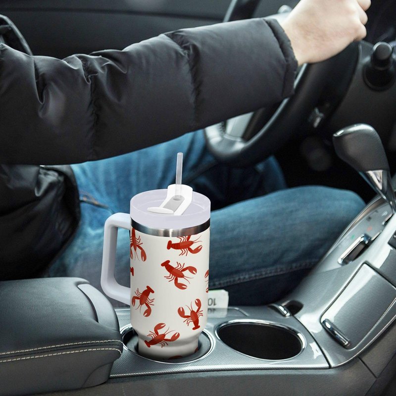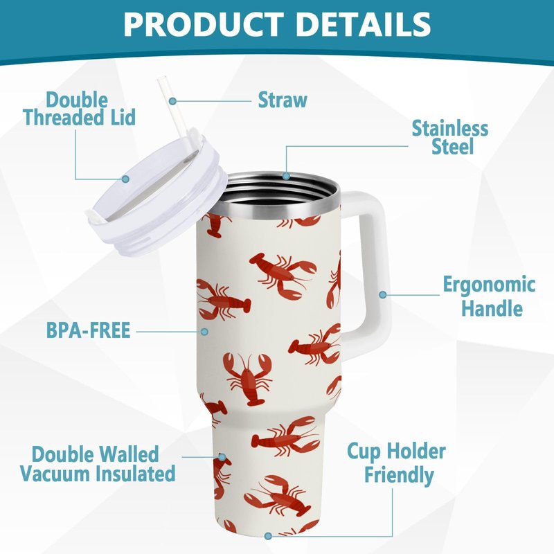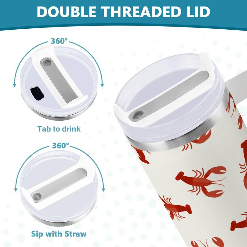 Boccsty Crawfish Red Lobsters Insulated Tumblers Reusable Stainless Steel Tumbler 40 oz Cup Coffee Travel Mug Water Bottle with Handle & Flip Straw for Home Office Car