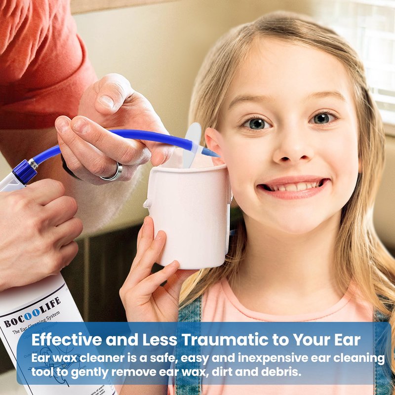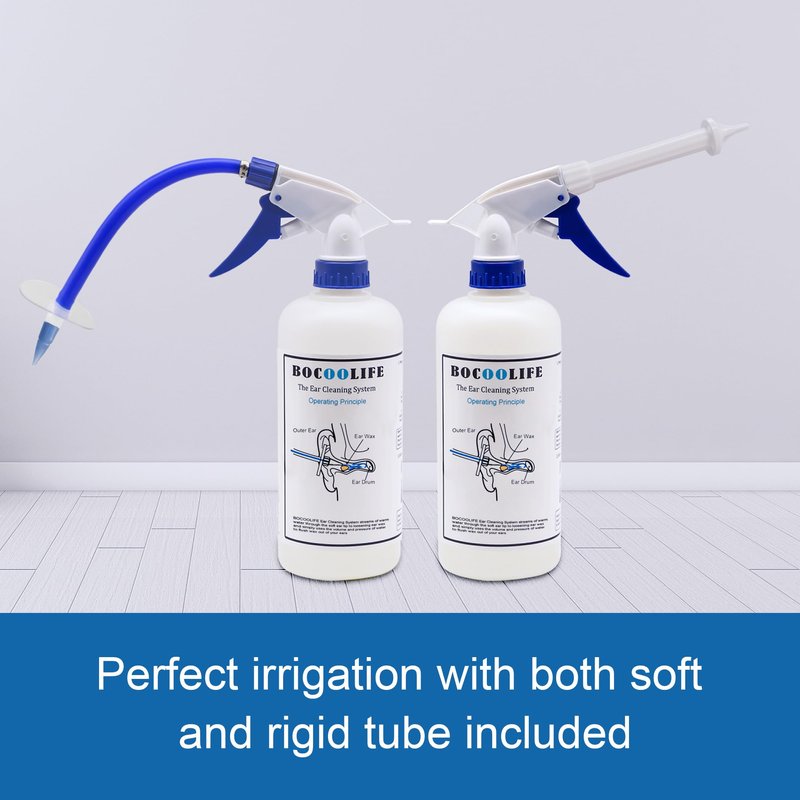 BOCOOLIFE Ear Wax Removal Kit, Ear Cleaning Kit Ear Washer Irrigation Flushing System, Ear Basin & 3 Ear Tips,Easy to Operate,Safe and Effective to Clean Ear Blockage of All Ages. BOCOOLIFE ear flush wax removal kit, wax blockage is one of the most common causes of hearing loss. can also lead to earache, ringing in the ear, itching, odor, and discharge.This is often caused by attempts to clean the ear with cotton swabs. Most cleaning attempts merely push the wax deeper into the ear canal,causing a blockage. If not cotton swabs, is there other way to clean your ear more safe and effective? According to the American Academy of Otolaryngology(ear, nose, and throat specialists), irrigation or ear syringing is a much better solution. The BOCOOLIFE Ears Wax Removal Tool can deal with it perfectly. Avoid expensive doctor's bill. The ear Cleaning System is easy to use at home. Simply fill 1/4 of the bottle with 3% hydrogen peroxide, and the rest with very warm water. Attach one of the washing tips, stay seated,and pump the solution into your ear. it's so easy to clean your ear. Operating Principle- The soft ear tip passes through the ear wax,inject the liquid into the cochlea. When the liquid meets the eardrum, it flows back,and flush the ear cerumen wax out from ear. Package Includes - Ear Spray Bottle - 1, Ear Basin -1, Extra Ear Tips - 3