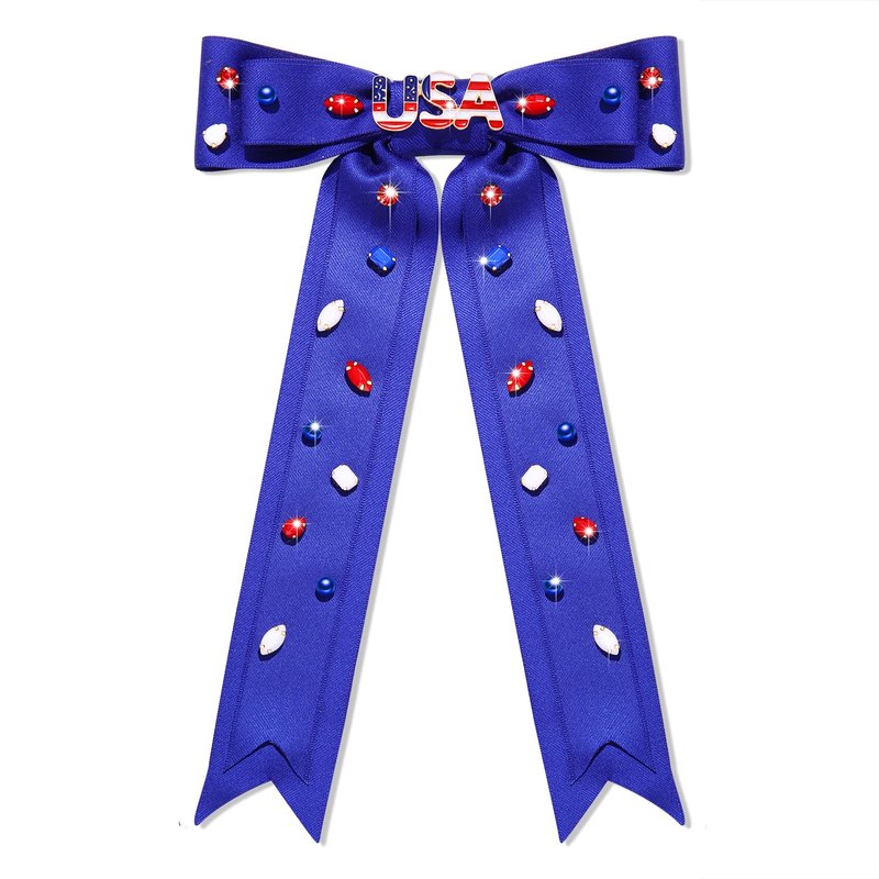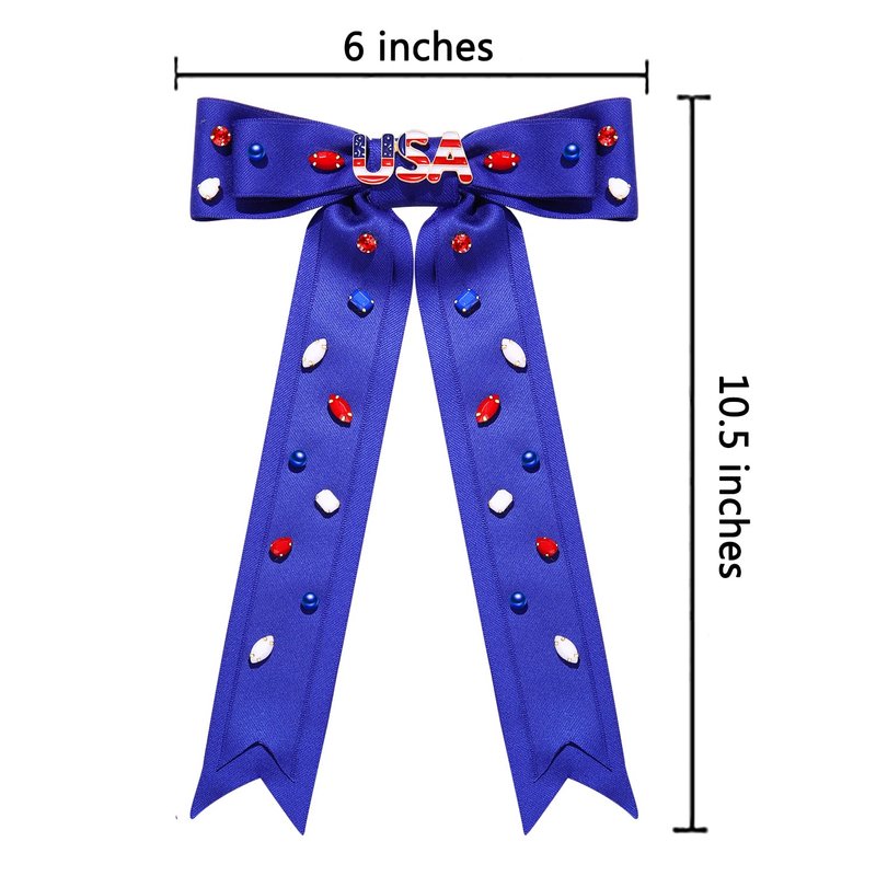 - Patriotic Hair Bows:Ready to shine brighter than the fireworks this 4th of July with our beautiful American flag hair bow clips for women!Features the blue silky satin hair clips in classic bowknot design with USA charms and sparkling rhinestone crystals embellished,fully of USA patriotic spirit.4th of July hair bows perfect for any holiday festivity....From the BBQ to the Fireworks this red white blue hair bows will surely turn heads!!!