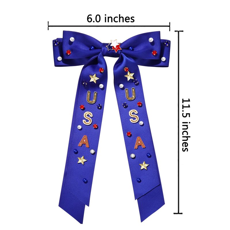 - Patriotic Hair Bows:Ready to shine brighter than the fireworks this 4th of July with our beautiful American flag hair bow clips for women!Features the red white and blue silky satin hair clips in classic bowknot design with stars charms and sparkling rhinestone crystals embellished,fully of USA patriotic spirit.4th of July hair bows perfect for any holiday festivity....From the BBQ to the Fireworks this red white blue hair bows will surely turn heads!!!