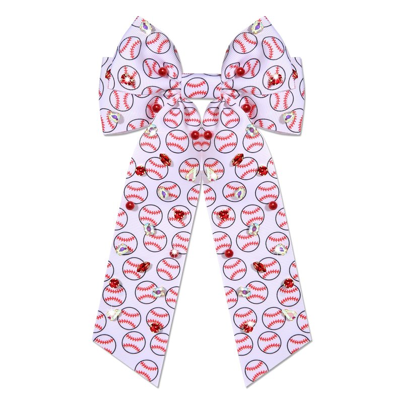 - Take your look to the next level. Mix and match these large baseball bows with your other sports outfits and let your inner stylist shine. The eye-catching crystal baseball charm on this bow shines brilliantly, creating a glamorous and unique baseball accessories that catches the light and accentuates your style. Whether you're cheering at a baseball game or simply showcasing your passion for the sport, this sports hair accessory’s baseball-themed aesthetics make it a versatile accessory that effortlessly complements various hairstyles and outfits