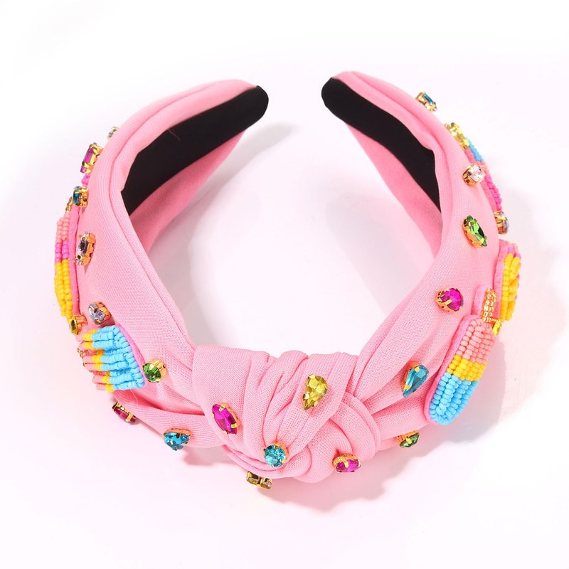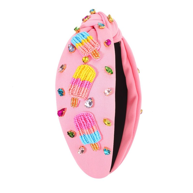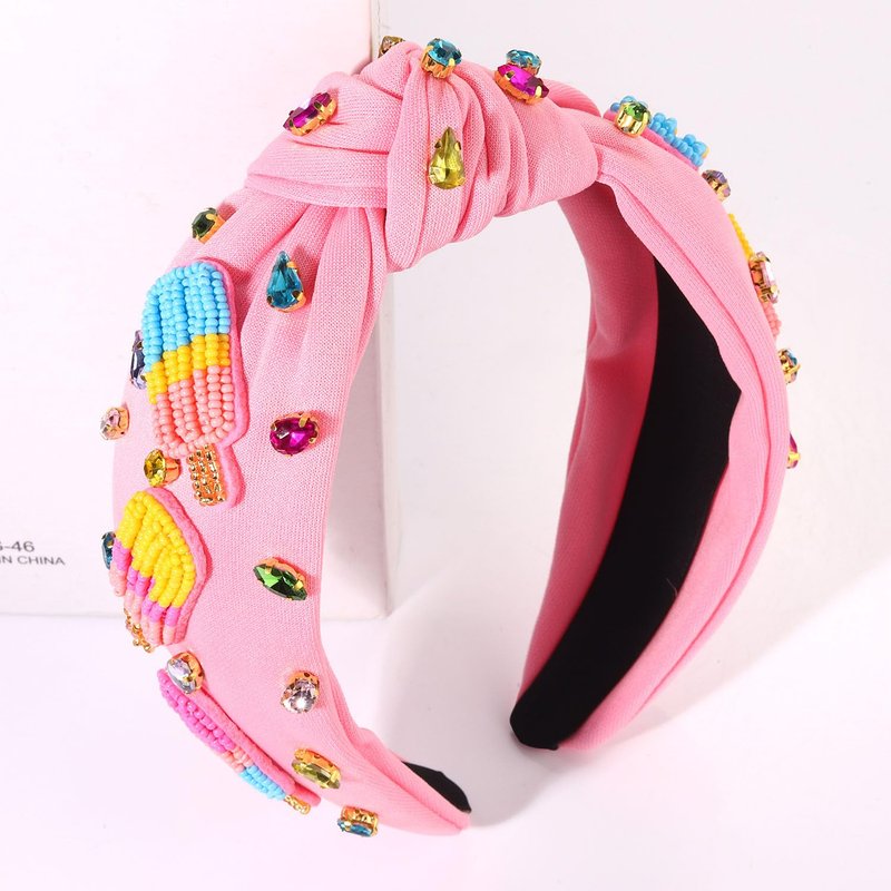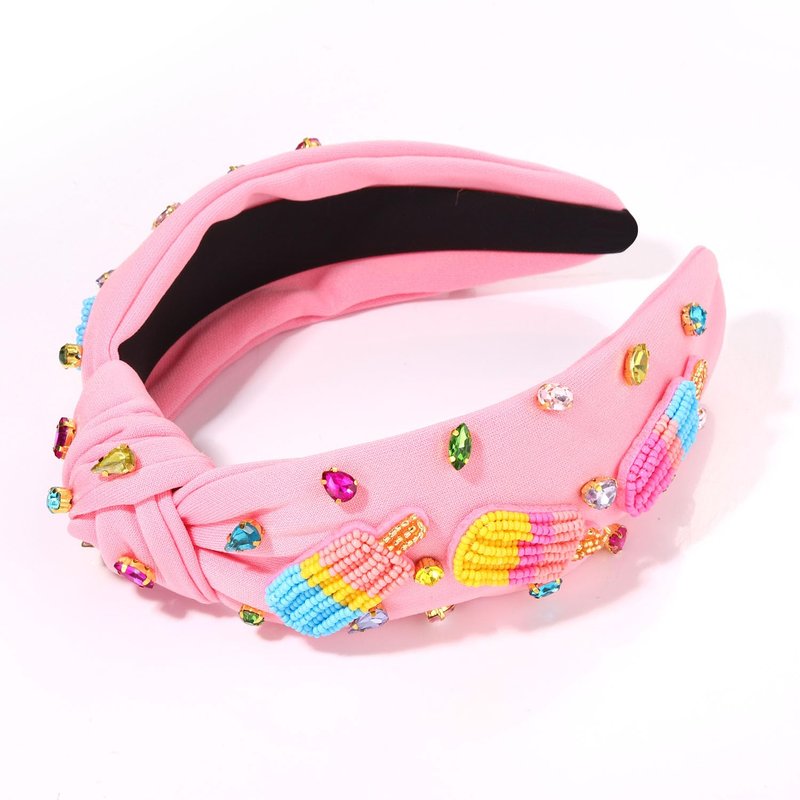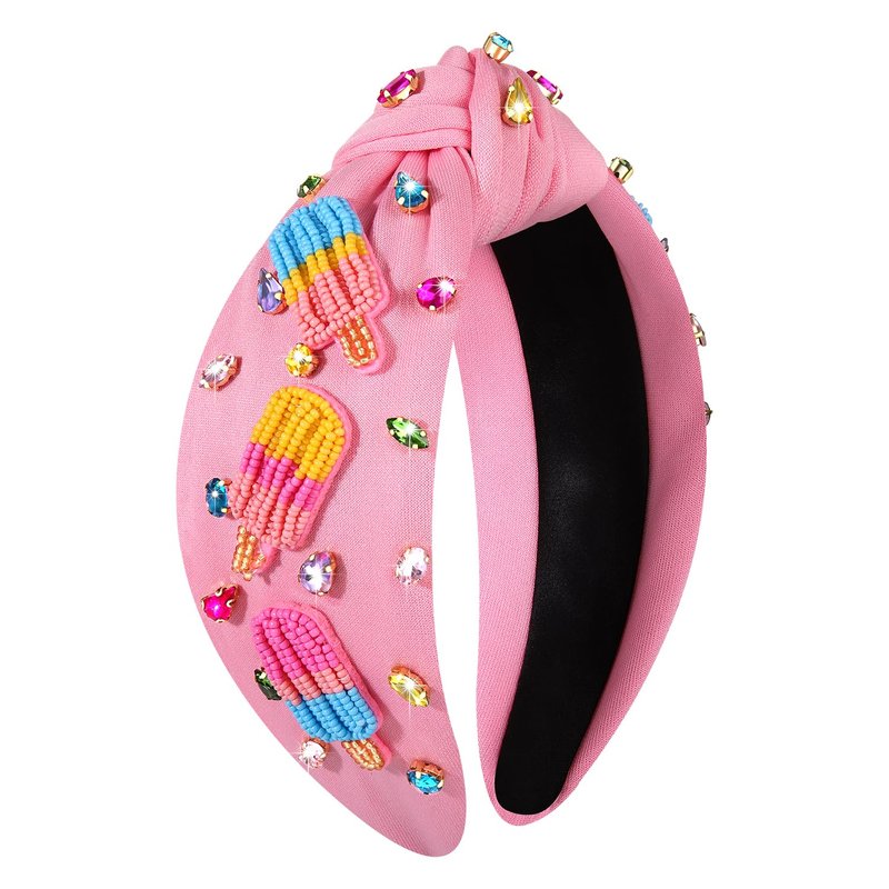 - Add a touch of summer fun and sweetness look with our ice cream popsicle headband,these cute headbands feature carefully arranged hand-sewn rainbow beaded popsicle and jewels embellishments for that extra sparkle on a pink knotted headband. These fun summer headbands for women are more than just hair accessories - they are statement pieces that perfectly combine fashion and function.Show off your playful style with this unique beaded popsicle knotted headband