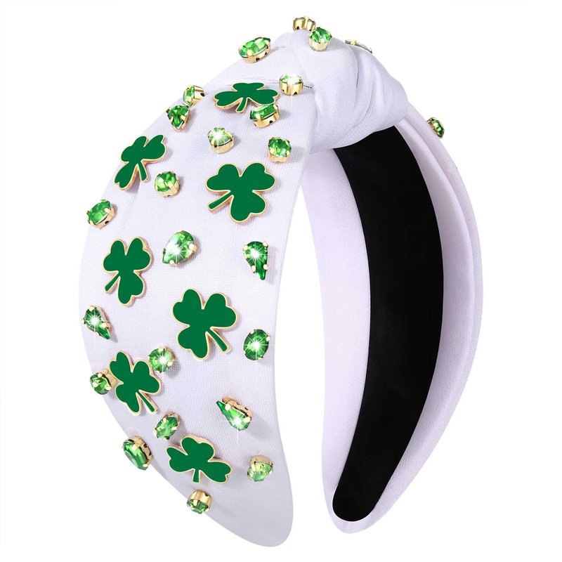 - Honor your Irish heritage with this Jeweled Green Knotted Headband for Women!This St.Patrick's day hairband made of high quality soft fabric,plastic charms and rhinestone materials,nickel free,lead free,lightweight,stretchy and super flexible,comfortable for all day wear.Wear these green hat headwear all night to be in the Irish spirit!Just the good luck accessory you need for St.Patrick's,luncheons, parades,parties,and all St. Patrick's Day festivities!Size:approx 5.5in diameter.