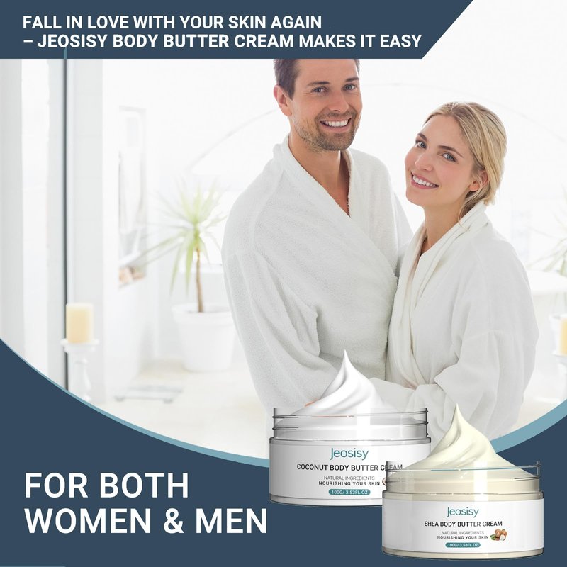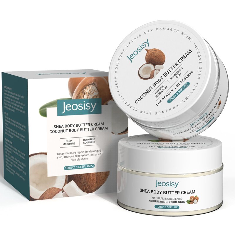 - Set of 2 Body Butter Cream Set: Our Shea Butter and Coconut Body butter set will be your new skincare products, not only helping to deeply nourish the skin, but also leaving every inch of skin soft and moist. Easy to carry jars to meet your skincare needs at any time, use these after a day at the beach, by the pool, they are especially effective at restoring hydration to dry, damaged, or peeling skin, making them a must-have for any aftersun care routine.