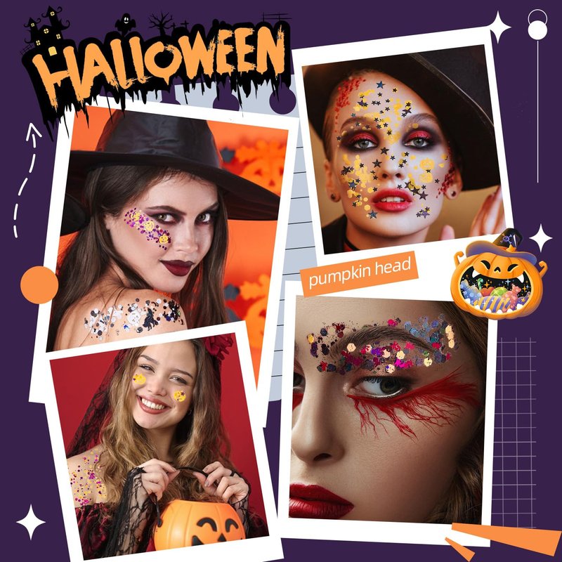 - UNIQUE AND CHARMING GLITTER SHAPES - Our body glitter comes in a variety of shapes such as pumpkins, ghosts, skulls, hexagons, etc., which shimmers differently as the angle of the light changes. Perfect for Halloween or all kinds of parties.