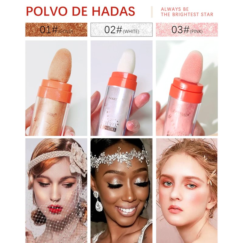 - EASY TO USE- The unique puff highlighter design is very convenient to use. When using it for the first time, you can shake it gently, then directly touch the skin and tap the sponge tip, the glitter highlighter will be attached to your skin or hair. Compared to spray highlighter, the sponge tip applies more evenly and does not fallout powder to get more glitter