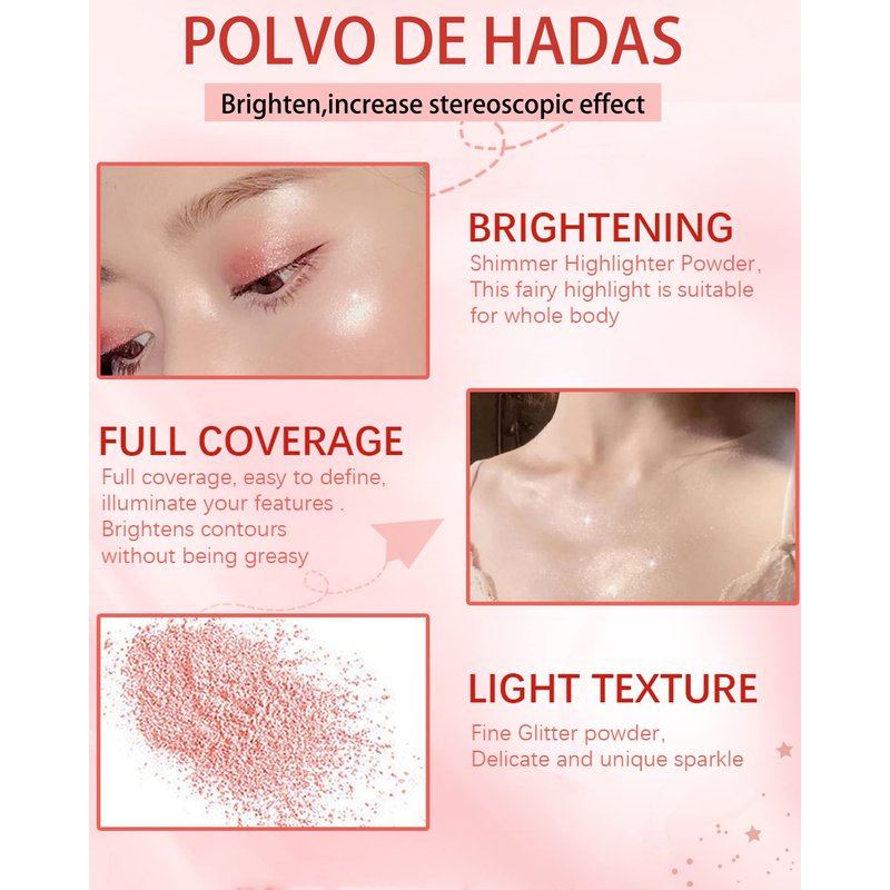 - SAFE INGREDIENT-Polvo De Hadas is cruelty-free, vegan and non-toxic. The ingredients are safe and suitable for most skin types, so you can use it with confidence. The glitter powder is naturally delicate and has good adsorption, the puff makes the application more even, it can help to absorb excess oil to keep skin fresh and cover skin imperfections. The bright luster will make you eye-catching and become the focus of the audience