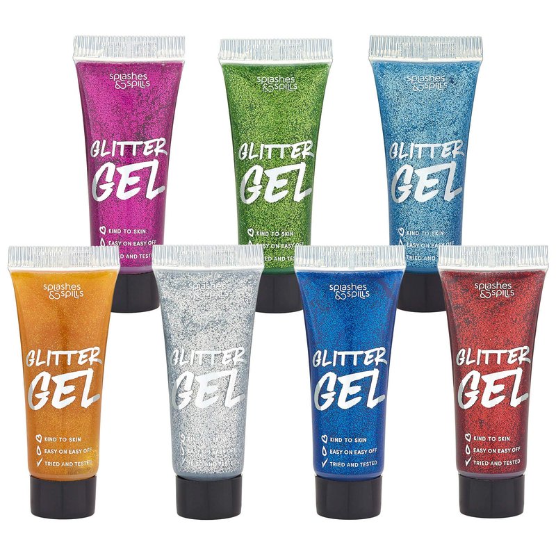 - ULTRA SPARKLING GLITTER GEL: Add some dazzle and shimmer to your face and body paint. Splashes & Spills Glitter Gel is great for your hair too! Create one-of-a-kind mesmerizing and reflective looks that never go unnoticed.