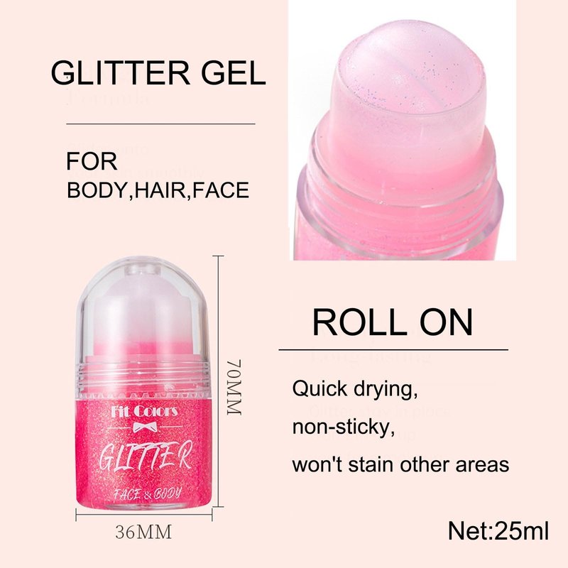 - Roll on Body Glitter: Glitter is placed in a sealed roll on, just one slip to apply glitter, very clean and hygienic, holographic fine glitter stays on for a long time, not only saves time but also applies very evenly on hands, face, hair, clothes, and won't get dirty or wasted
