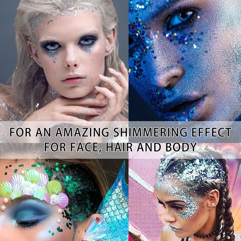 - 【Easy to Use】Our cosmetic-grade quality body glitter gel is with good adhesion, no glitter glue required, allowing you to effortlessly add a touch of sparkle to your body, face, hair, and lips. A quality glitter gel not only saves your makeup time, but also simplifies your makeup removal process.