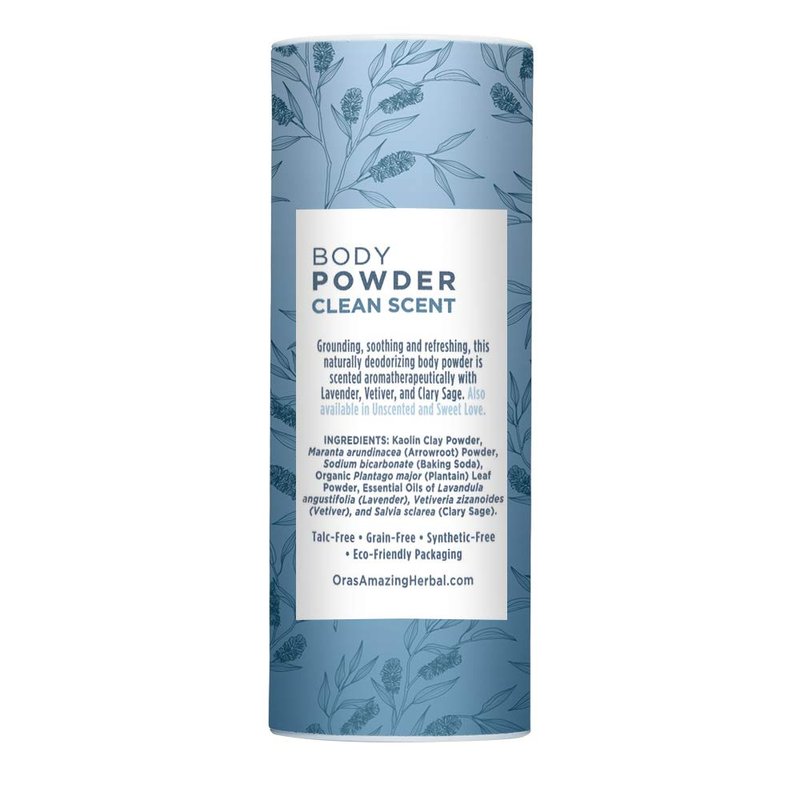 Body Powder for Men and Women, Dusting Powder, Foot Powder, Talc Free, Cornstarch Free, Clean Scent with Essential oils of Lemongrass, Eucalyptus and Spearmint, Ora's Amazing Herbal
