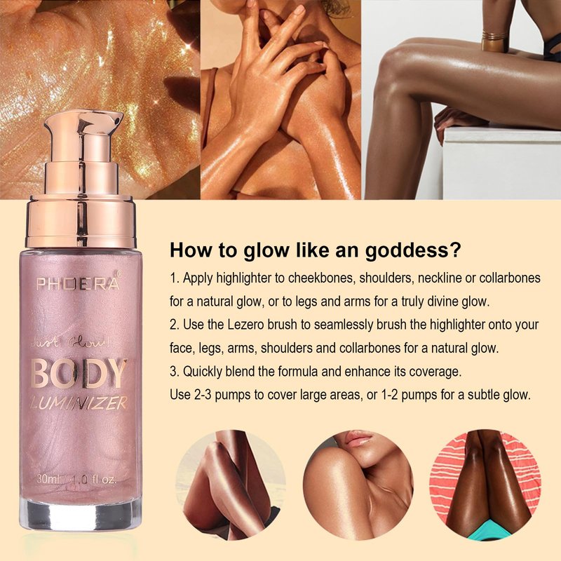 - 【LIQUID BODY LUMINIZER】Provide your skin with a year-round natural glow with this moisturizing body highlighter, that gives your skin an attractive shimmer in the sun. Long-term use will also slowly improve your skin tone, giving you a more natural and healthier complexion.