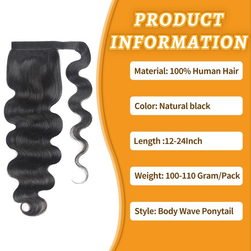 - Body Wave Human Hair Ponytail Extension, 100% Real Remy Human Hair Ponytail Extensions Can Be Washed, Conditioned, Cut, Colored, Flat Ironed, Bantu knotted, twisted Out And More,Treated Just Like Your Own Hair.