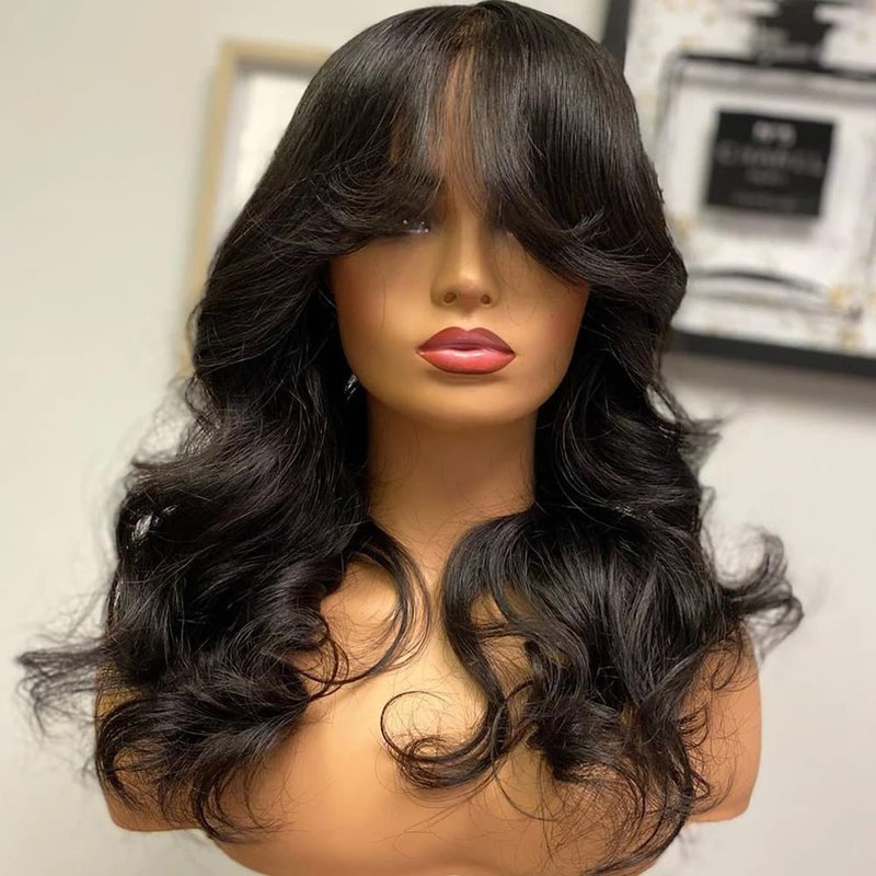 - 180 Density Human Hair Wigs Body Wave Bang Wig.The Texture is Soft, Bouncy and Easy to Detangle. 100% Human Hair, Soft, Smooth As Silk, Can Be Bleached and Dyed, Minimum Shedding, No tangle, No Smell.
