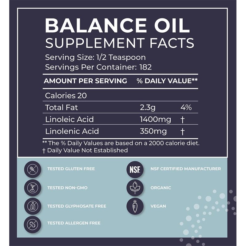 Omega 6s and Omega 3s are the most powerful nutrients we can give our bodies. BodyBio Balance Oil is formulated with a ratio of four (4) parts omega 6 to one (1) part omega 3. Taken in this ratio, these nutrients positively impact brain function, digestive health, liver function and cardiovascular activity. The World Health Organization (WHO) has endorsed the 4:1 ratio as the optimal balance of Essential Fatty Acids (EFA’s). EFAs are essential for life. ** + Low temperature expeller-pressed safflower and flaxseed oils . + Non-GMO and certified organic. + No additives, preservatives, bleaching agents, deodorants, or hexane extraction. + Contains 0g trans fatty acids.