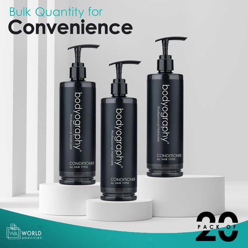 Elevating hair care to all time high: The Bodyography pump bottle hair conditioner. In the world of hospitality, crafting an unforgettable and pampering experience for the guest is the ultimate aspiration. It's about surpassing expectations and offering a touch of opulence that distinguishes your property. The Bodyography hair conditioner for damaged dry hair is a product that not only accomplishes this but sets a new standard in guest amenities. At the heart of this exceptional hair conditioner for women and men is the lavender peppermint fresh fragrance, a harmonious fusion of freshly picked lavender flowers and enveloping peppermint extract notes. It's a fresh scent that transcends the ordinary, evoking deep relaxation and tranquility. Guests will find themselves transported to a world of serenity as they immerse themselves in the captivating aroma of this conditioner for men and women. It's not just hair care; it's an aromatic journey. The Bodyography conditioner for colored hair redefines convenience in hair care. Its innovative packaging features a secure lock pump bottle that ensures guests can effortlessly dispense the liquid conditioner with a simple press. No mess, no fuss, just pure convenience. It's a testament to your commitment to providing a trouble free hair care experience, allowing your guests to focus on rejuvenation. While the captivating fresh fragrance is an experience in itself, this curly hair conditioner offers more than just sensory pleasure. Its carefully crafted formula delivers long lasting hydration and hair nourishment to your healthy hair. Whether used after shampooing or as part of a spa-like hair treatment, the mens and womens conditioner leaves the hair feeling moisturized, silky smooth, and luxuriously ultra soft. It's a gift of rejuvenation that your guests will cherish. The Bodyography hair conditioner for dry hair upholds the hallmark of premium quality.