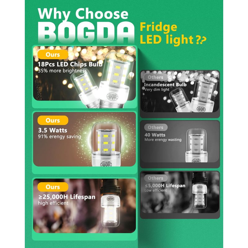 - >>>HIGH QUALITY: Our LED fridge light bulb are crafted from premium materials and undergo multiple power-on lighting and aging tests to ensure they meet rigorous standards. We subject each product to over 2,000 tests before shipping it out, so you can rest assured that you're getting a reliable and high-quality product that has undergone strict quality control measures. For your safe, please disconnect the power to the Refrigerators before begining this repair.