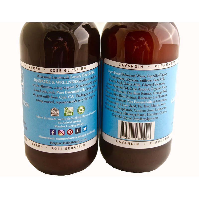 Goat Milk Lotion provides restorative proteins, vitamins and minerals, absorbs quickly without feeling greasy, and helps skin maintain its natural moisture balance. Hair & Body products, like our artisanal, handmade Luxury Goat Milk, BESPOKE & WELLNESS items are crafted to be effective, using organic & sustainable plant-based oils and pure Essential Oils, with local herbs & goat milk from Ojai, CA. Bogue Milk Soap creates handmade effective products using all-natural, organic, sustainable, responsibly sourced ingredients, many locally. Soaps are all made with organic, sustainable plant based oils and goat milk, and use only pure essential oils, infused oils and herbs for scent and skin nourishment. Goat milk has long been known for its moisturizing qualities as a natural emollient that soothes and moisturizes skin. There are no artificial additives, preservatives, dyes or fragrances.