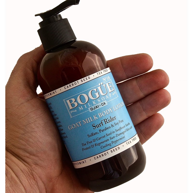 BOGUE Goat Milk Body Lotion- N°18 BESPOKE The 'Surf Rider' Blend-Tea tree & Carrot Seed with sunflower oil soothe & protect with cooling peppermint for sun-kissed skin