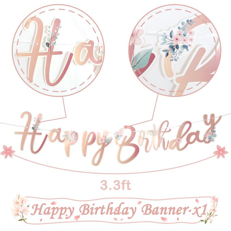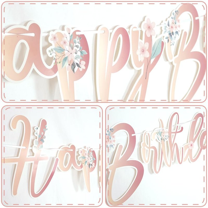 - High Quality: This floral rose gold happy birthday banner is made of durable and lightweight cardboard that is easy to hang and reuse