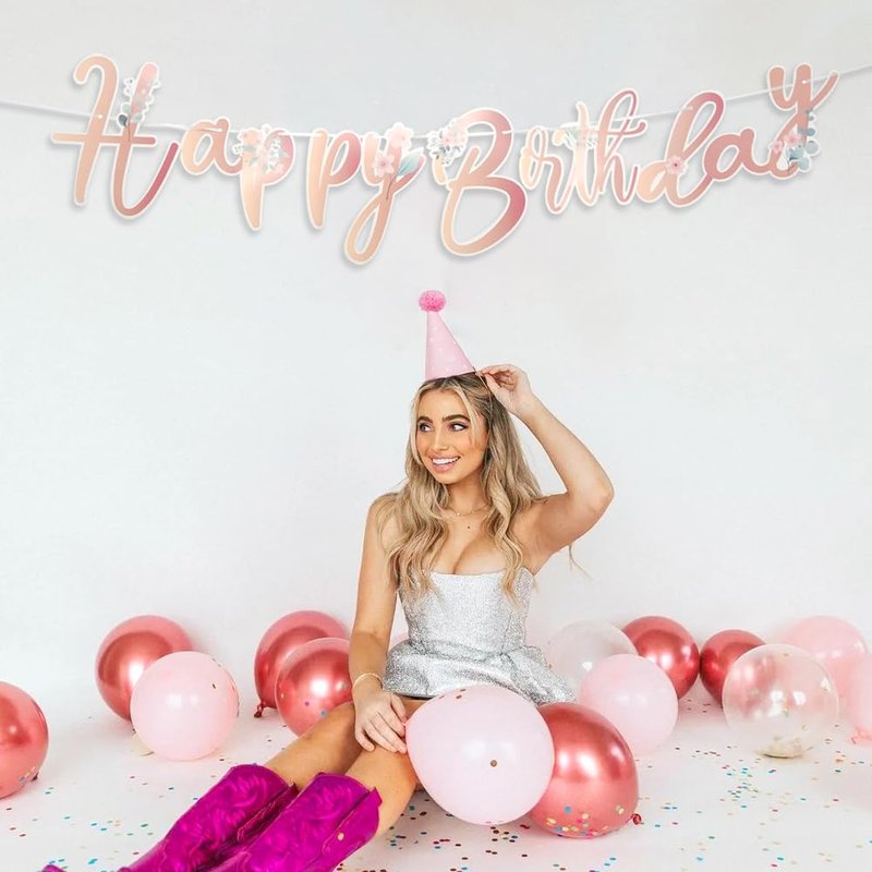 - Floral Rose Gold Happy Birthday Banner Includes: 1 set boho "Happy Birthday" banner, 1 pcs ribbon, perfect for boho birthday decorations, floral birthday decorations, rose gold birthday decorations, little miss onederful birthday decorations, spring birthday party decorations, etc