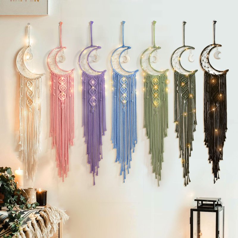 - HOME DECORATION: This beautiful moon phase wall hanging macrame will fill a blank wall and give the room a bohemian flair. It will looks gorgeous in a bedroom, sitting room, baby nursery, balcony, studio or in your living room as a stylish and cozy decor. You can hang it anywhere: above the sofa, fireplace, desk or on the top of your bed. even a cozy cafe or a studio. With warm, natural colors, making your home feel even homier.